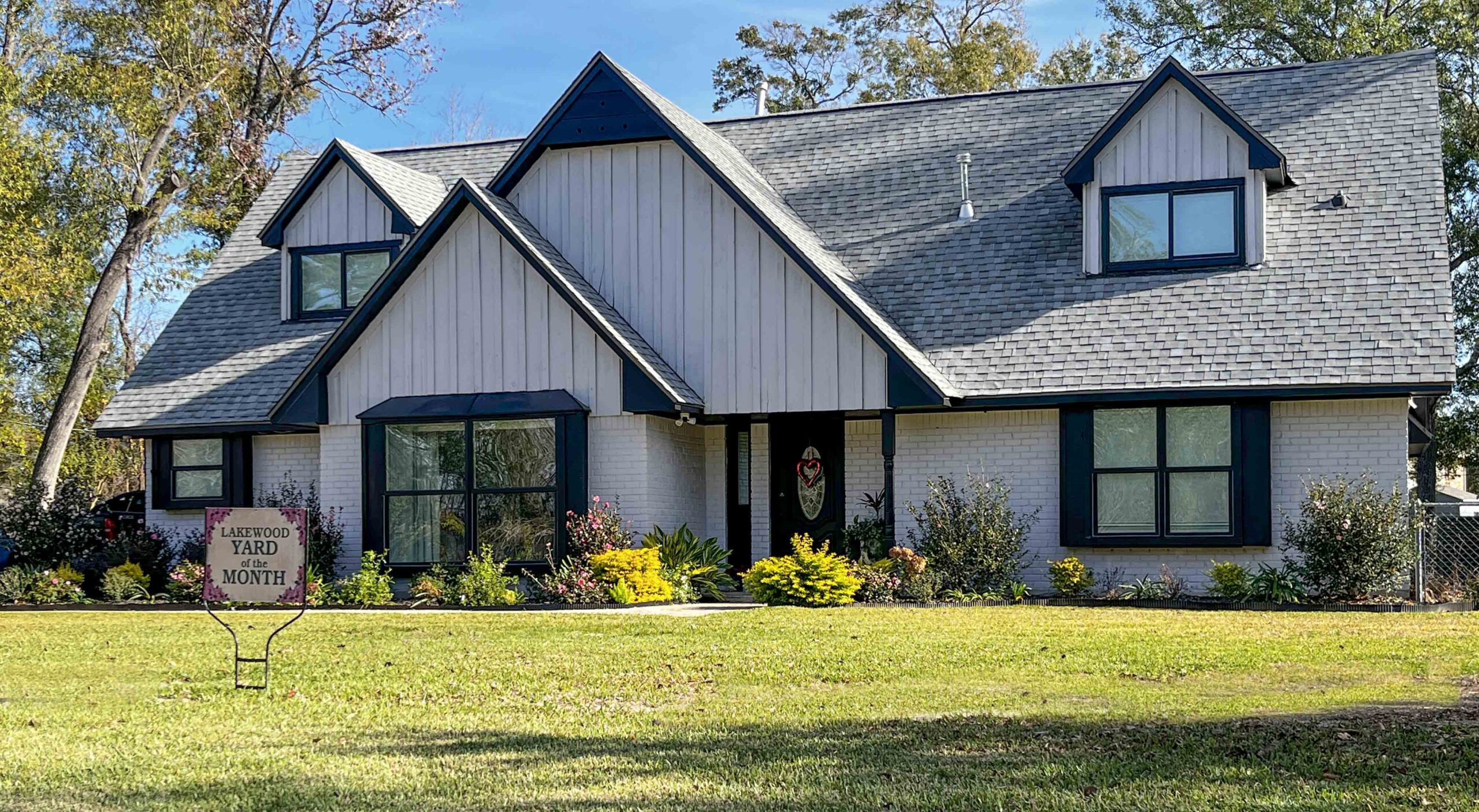 The Lakewood Garden Club has selected 107 Red Bud Ln., Home of Jean Gammel as Yard of the Month for November. Brightly colored Vincas in shades of peach, coral, pink, red and white are planted along the walkway entrance to the home, accented by red roses. A most pleasant display of colors to greet you.