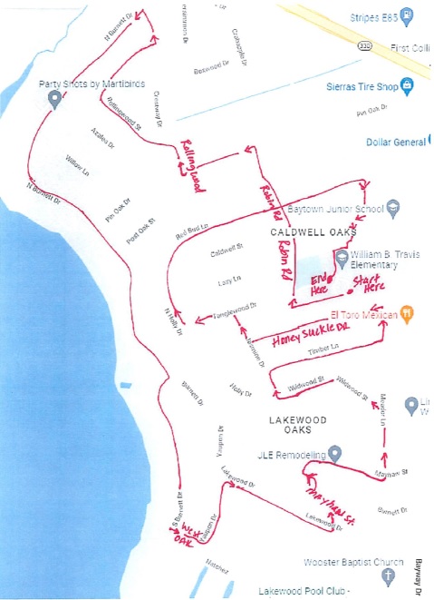- The parade will begin at 5:30 p.m. in front of Travis Elementary and end in the parking lot in front of the cafeteria (parade route attached).